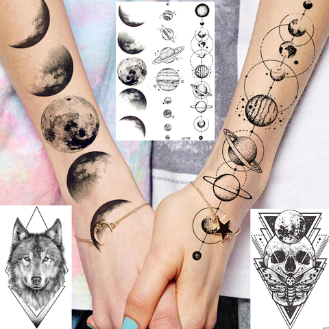 Buy Online Water Transfer 3d Star Black Planet Tree Temporary Tattoo Sticker For Kids Women Men Wolf Lion Tree Tattoos Foream Body Arm Tato Alitools